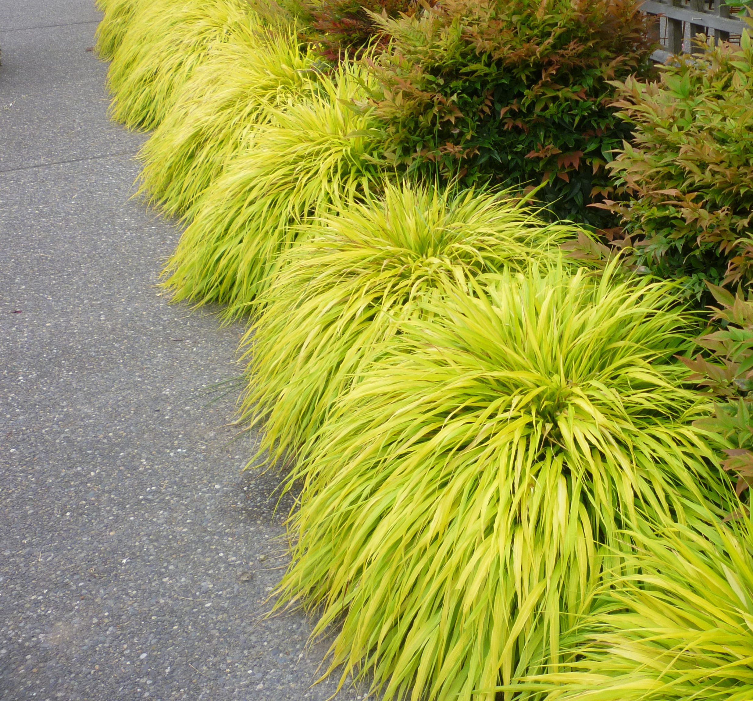 1.5′ Tall by 1.5′ Wide Bright yellow leaves with thin green stripes, leaves become pink tinged in Fall Part Shade to Part Sun
