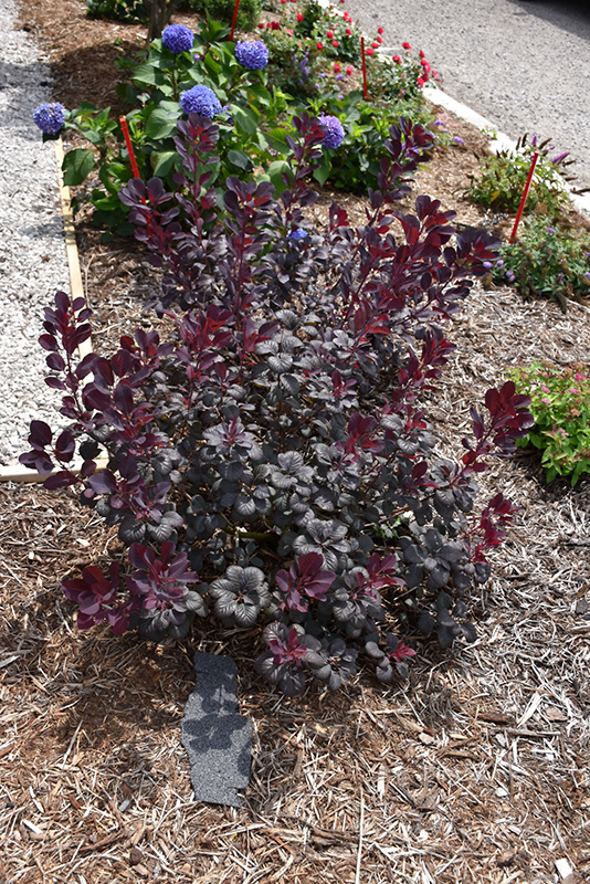 4-6′ Tall by 4-6′ Wide Pink/Red smoke like blooms in Early Summer, Dark purple foliage all season Full Sun Deer and rabbit resistant, very low maintenance, smaller than other smoke bush varieties